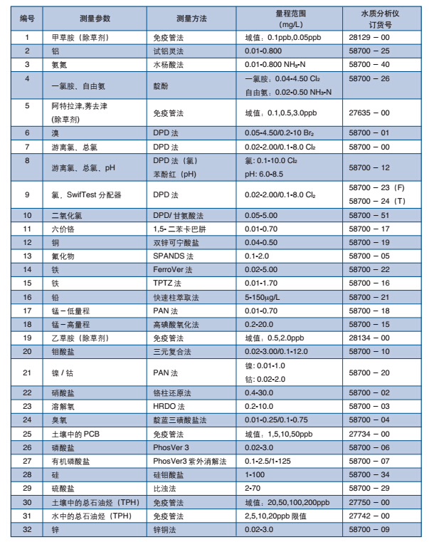 哈希公司推出了三十多种型号的PCII 系列单参数水质分析仪一PCII 系列袖珍比色计,不仅适用于野外现场水质测试,而且也适用于实验室内的水质分析。